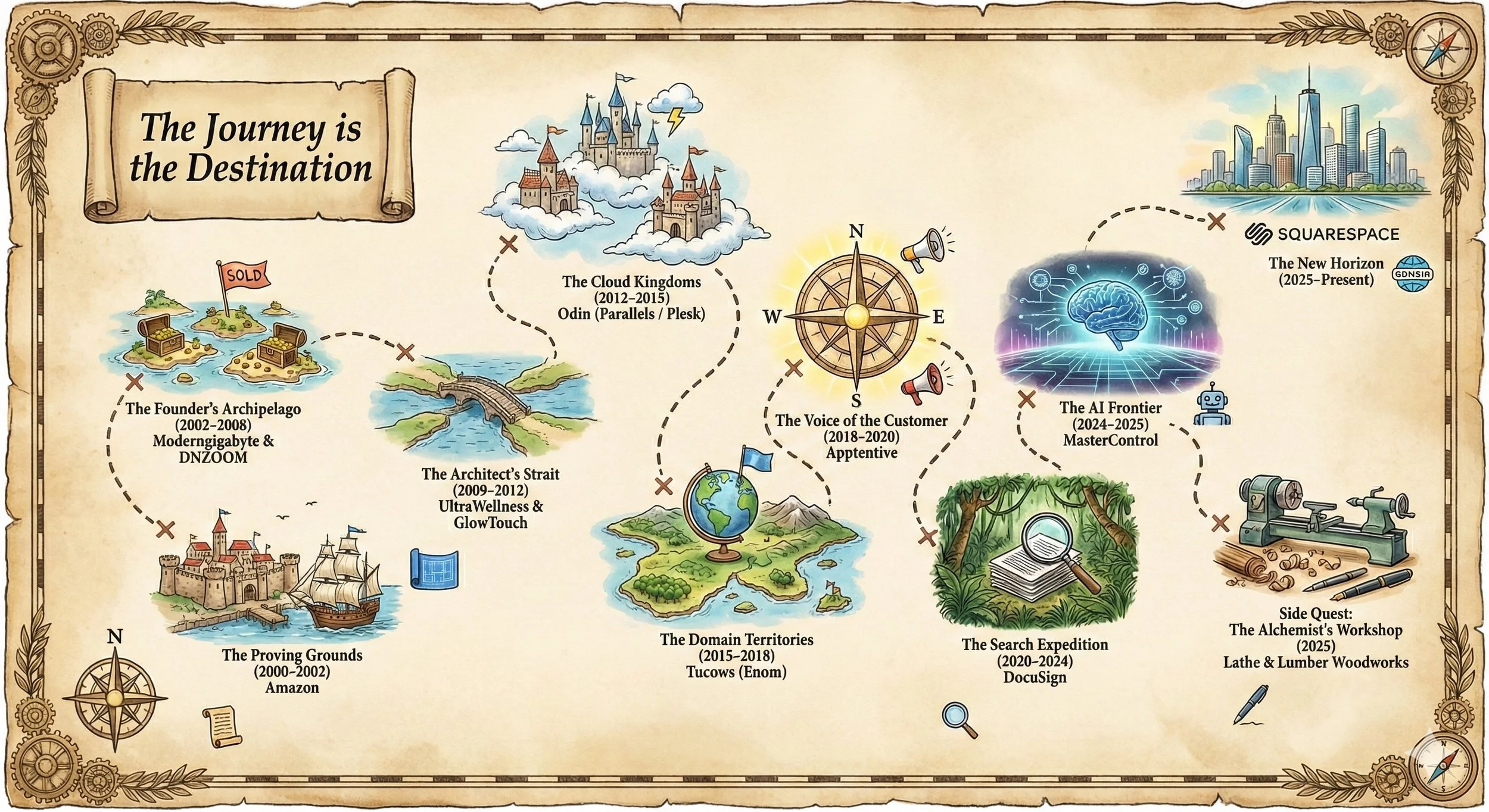Product Management Background → 2010-present (Parallels/Plesk, Rightside/eNom, Tucows/OpenSRS, Apptentive, DocuSign, MasterControl, Squarespace)